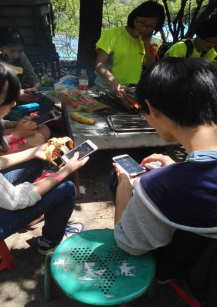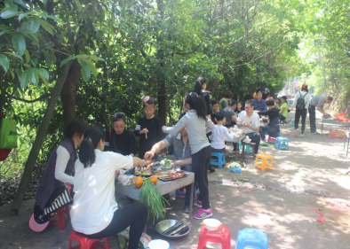 中午11時左右,下山的客戶朋友稍作休息后就迫不及待來到燒烤場,準(zhǔn)備享受美味的食物。