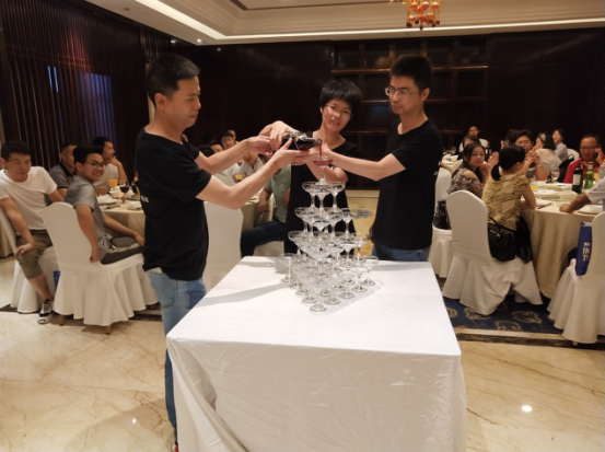 緊接著由金辰軟件合伙人倪小紅女士、李家駒先生和李總一起手捧巨大香檳,向香檳酒塔倒入這15年的美好回憶。晶瑩剔透的香檳酒塔,象征著15年來與客戶共建的累累碩果,層層塔尖象征著一個公司的前進(jìn)階梯,大家舉起了手中的酒杯,