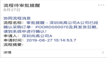 啟用采購協(xié)同管理的供應(yīng)商通過微信接收到同步的采購訂單信息后,對所屬的采購訂單確認(rèn)后進(jìn)行發(fā)貨。全程高效協(xié)同,實(shí)現(xiàn)有計劃的集中采購(微信端接收信息與處理)。